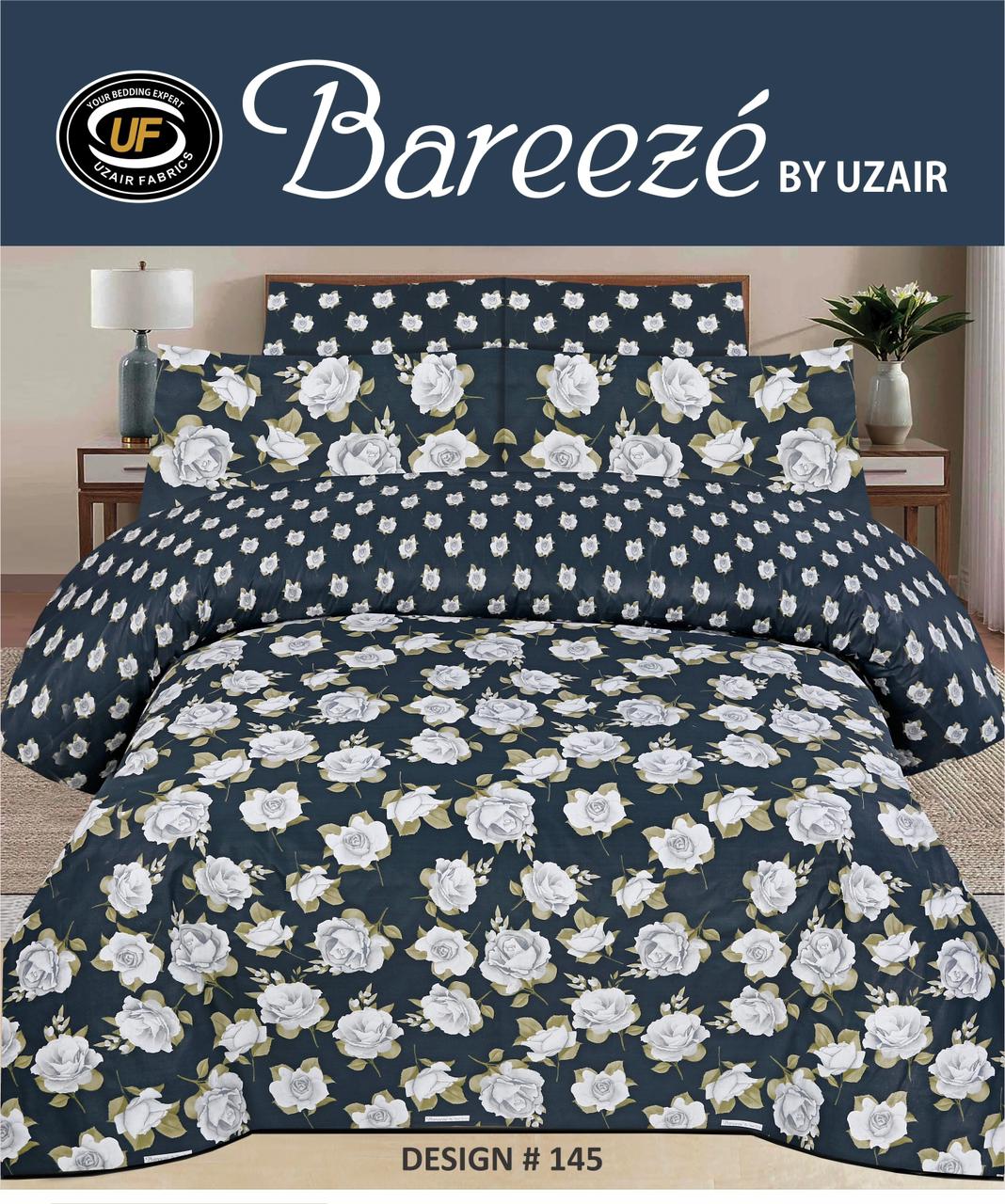 Bareezé Premium Cotton Bedsheet – Classic Navy Blue Rose Floral – Design 145 Elevate your bedroom with this sophisticated bedsheet featuring an exquisite rose floral pattern rendered in crisp white against a rich navy blue backdrop.